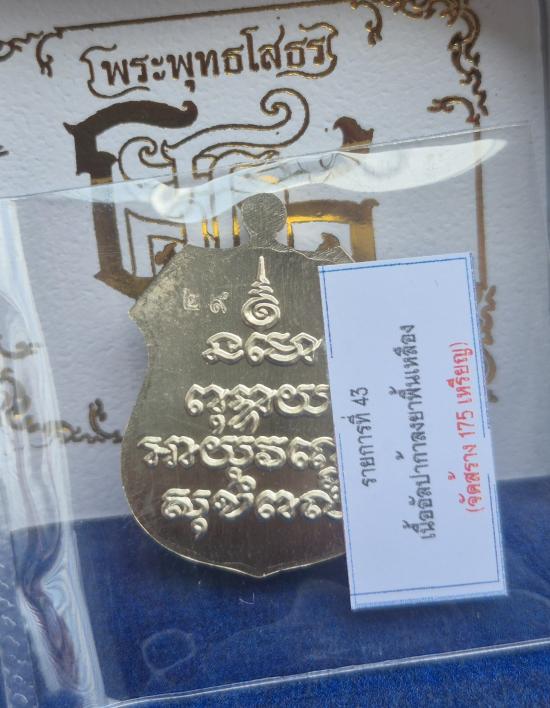 เหรียญโล่ หลวงพ่อโสธร รุ่นเจ้าสัว ปลุกเสกติดต่อกัน5วันเกจิ500กว่ารูป เนื้ออัลปาก้าลงยาเหลือง เลข 29