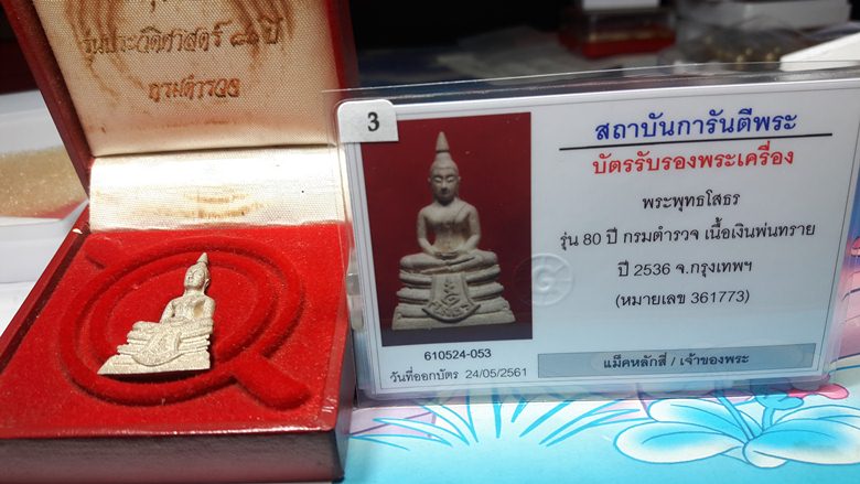 หลวงพ่อโสธร ๘๐ ปี กรมตำรวจ พ.ศ.๒๕๓๘ กล่องเดิม เนื้อเงินพ่นทราย พร้อมบัตรรับรอง