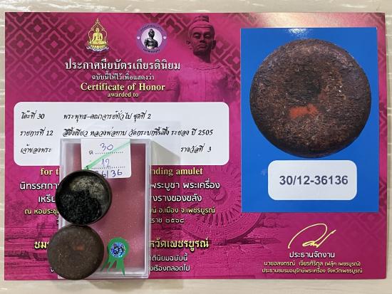 ครบสูตรสีผึ้ง หลวงปู่ทิมร่วมปลุกเสก สร้างปี 2505 สวยสมบูรณ์ผิวเดิมๆ ไม่หักไม่ซ่อม รับประกันพระแท้ ดูง่าย พร้อมใบประกาศงานประกวดจากสมาคม