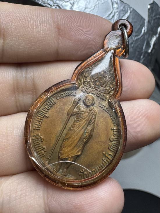 เหรียญยืนถือไม้เท้า หลวงปู่แหวน สุจิณโณ หลัง ม ว ก ปี พ.ศ 2519