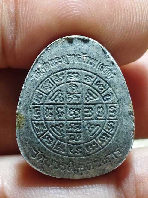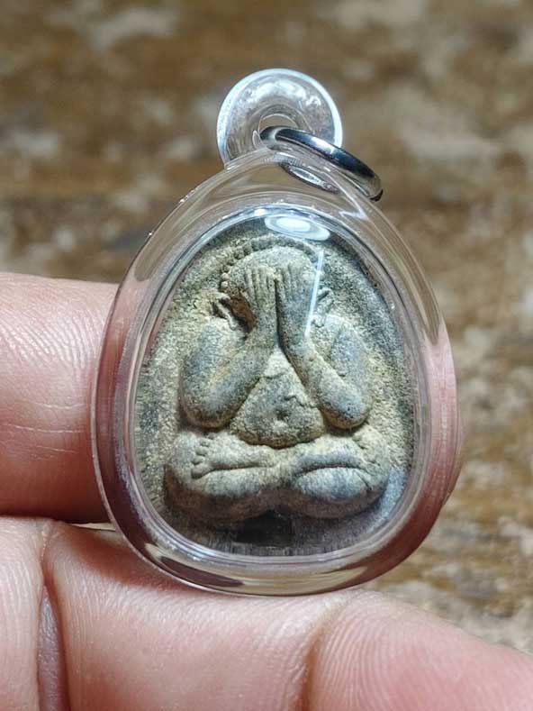 วัดใจเคาะเดียวแดง พร้อมเลี่ยม พระปิดตายันต์ดวงเล็ก สมเด็จพระญาณสังวร วัดบวรนิเวศ กรุงเทพ ปี-2523 เนื้อผงอม เทาๆ แบ่งเบาๆเฉพาะค่าเลี่ยม 200 บ. องค์ที่ 1