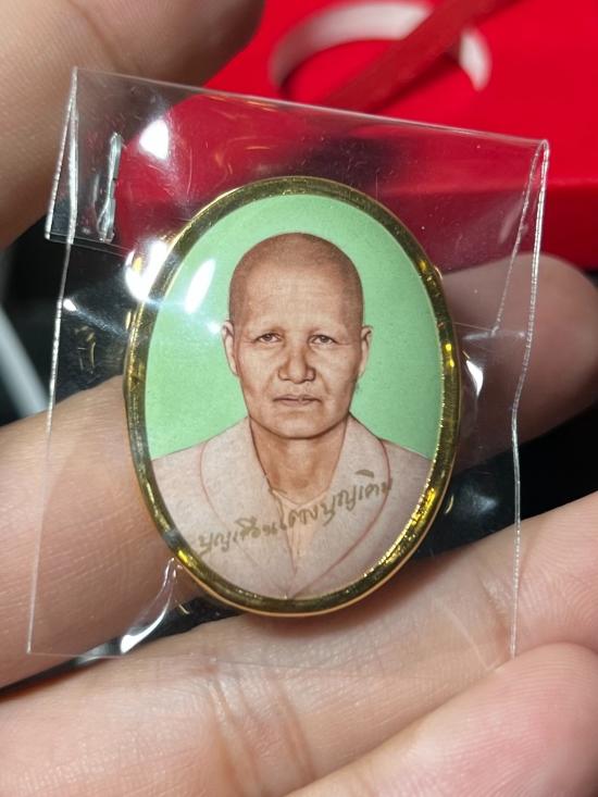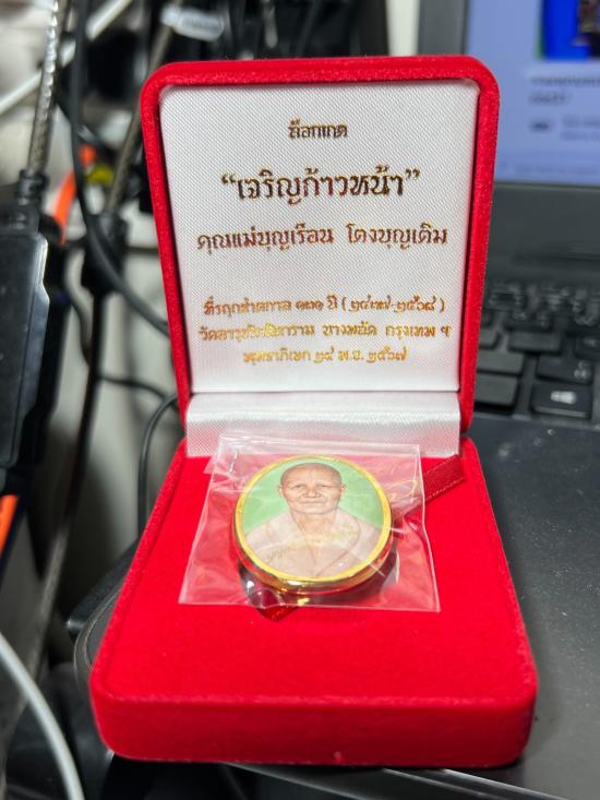 ล็อกเกต รุ่น เจริญก้าวหน้า พ.ศ.67 คุณแม่บุญเรือน โตงบุญเติม ฉากเขียวหลังโลหะชุบทอง เลข 524 ออกวัดอาวุธวิกสิตาราม กรุงเทพฯ สวยเดิมๆจากวัด