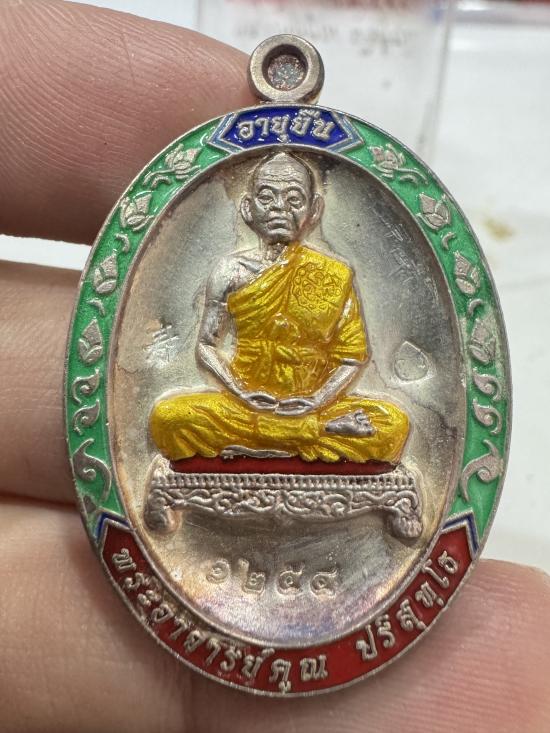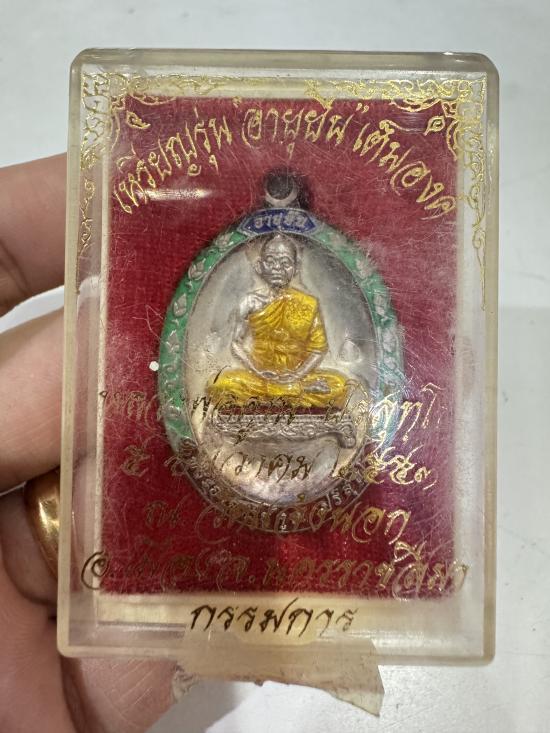 เหรียญอายุยืน พิมพ์เต็มองค์ ปี2553 เนื้อเงิน ลงยา no.1254 มีกล่อง