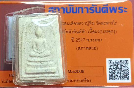 พระสมเด็จหลวงปู่ทิม วัดละหารไร่ พิมพ์หลังยันต์ห้า เนื้อผง(บรรจุกรุ) ปี2517 จ.ระยอง พร้อมบัตรรับรอง(สภาพสวย)