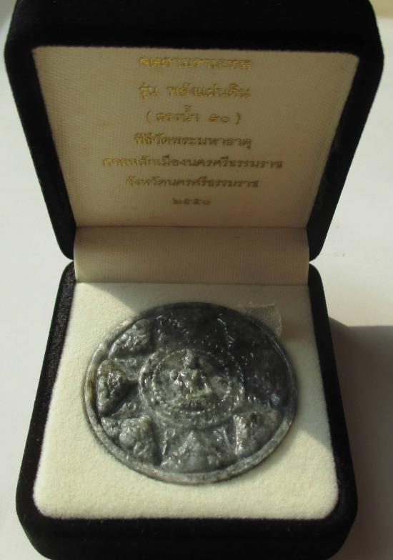 เหรียญองค์พ่อจตุคามรามเทพ รุ่น"พลังแผ่นดิน" (มีกล่องเดิม) (สรงน้ำ ๕๐)จ.นครศรีธรรมราช ปี 2550 เนื้อหยก ขนาด 3.2ซม.