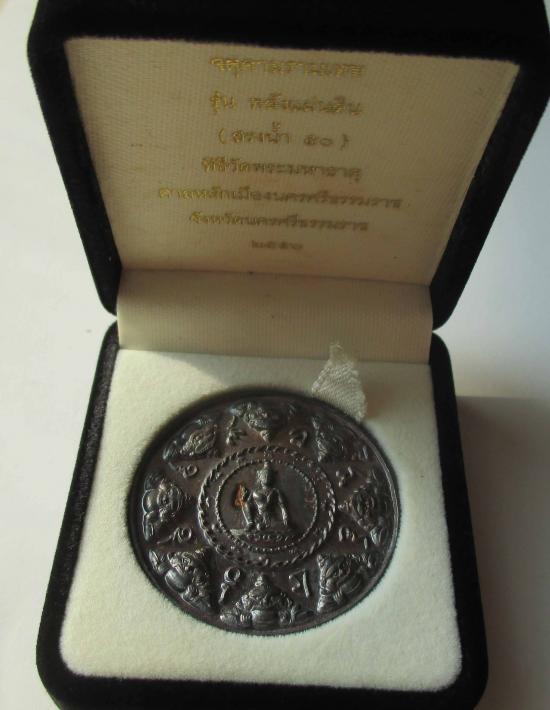 เหรียญองค์พ่อจตุคามรามเทพ รุ่น"พลังแผ่นดิน" (มีกล่องเดิม) (สรงน้ำ ๕๐)จ.นครศรีธรรมราช ปี 2550 เนื้อนวะ ขนาด 3.2ซม.
