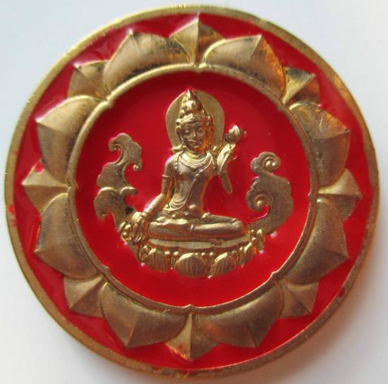 รุ่นทรัพย์เทวา เหรียญเนื้อลงยาสีแดง+เนื้อทองแดง 3.2ซม.