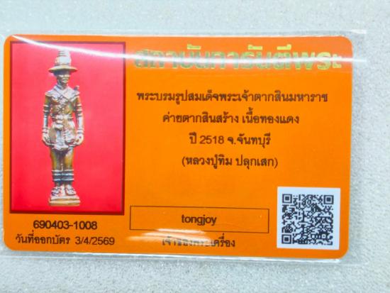 รูปหล่อพระเจ้าตากเนื้อทองแดงนิยมหายากครับพร้อมบัตร ติดที่ 2 งานศูนย์ราชการวันที่ 22/3/69