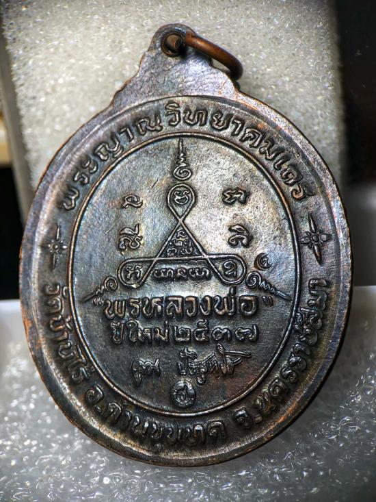 เหรียญหลวงพ่อคูณ รุ่นอวยพรปีใหม่ เนื้อทองแดง "ดีดี ปลอดภัย รวย รวย พระญาณวิทยาคมเถร พรหลวงพ่อ ปีใหม่ 2537