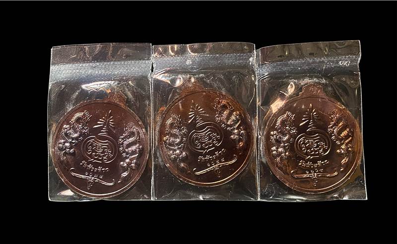 ถ่ายจากเหรียญจริงตามรูป เนื้อทองแดงรมมันปู 3 เหรียญกล่องเดิม