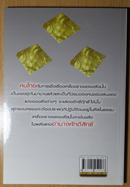 เครื่องรางของขลังแต่ละอย่างให้คุณแก่ผู้บูชาต่างกันไป ความแคล้วคลาดปลอดภัยเป็นคุณอีกอย่างหนึ่งที่คนต้องการ หนังสือเก่าสภาพยังใหม่ รูปเล่มขนาดประมาณ 5.5 x 8 นิ้วเศษ ความหนา 128 หน้า อ่านเพิ่มพูนความรู้ หนังสือดีราคาเบา..