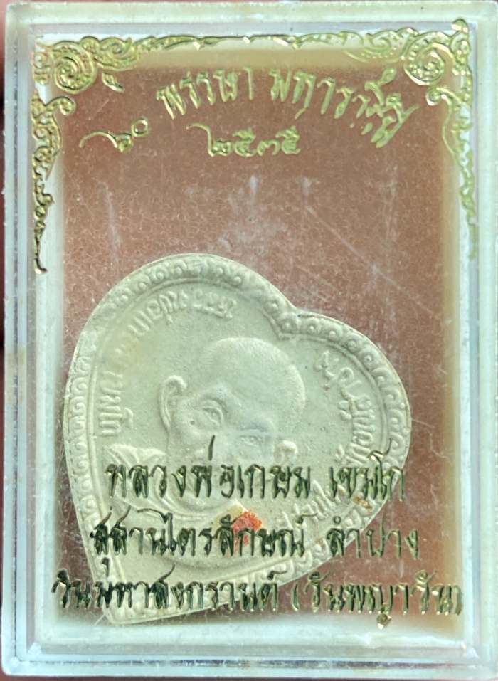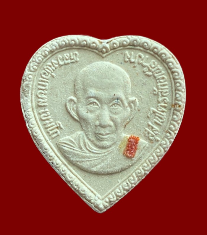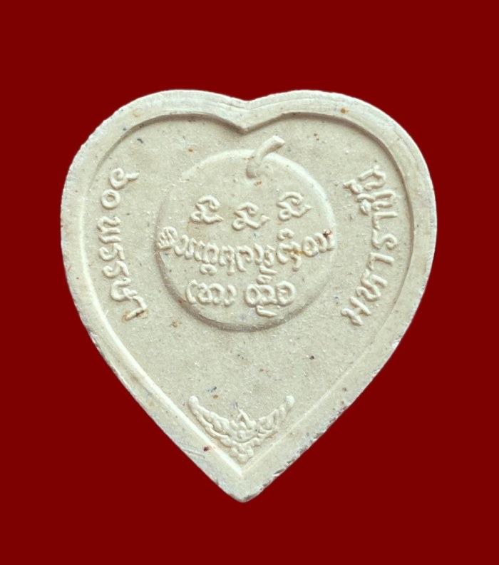 พระผงรูปหัวใจ หลวงพ่อเกษม เขมโก สุสานไตรลักษณ์ จ.ลำปาง (60พรรษา มหาราชินี) ด้านหน้าติดจีวร ปี 2535