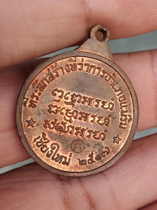 เหรียญหลวงปู่แหวน สุจิณโณ รุ่นที่ระลึกสร้างที่ว่าการอำเภอแม่ริม เนื้อทองแดงผิวไฟ หายาก ปี2517