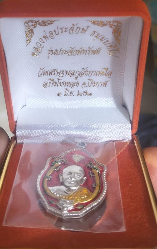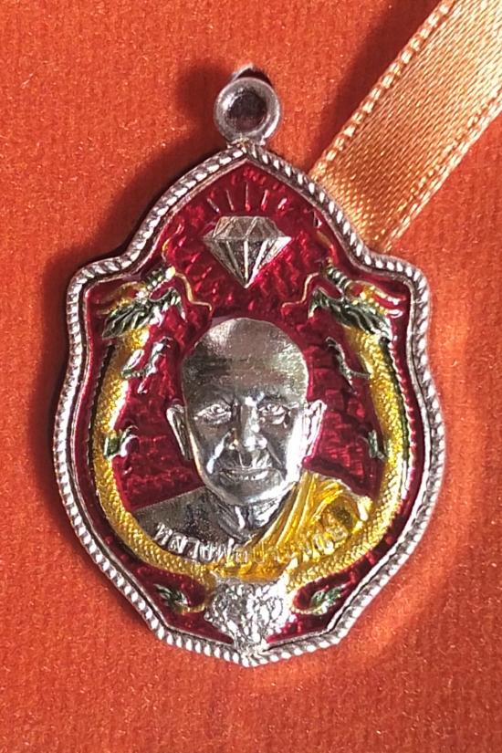 เหรียญมังกรรุ่นแรก เนื้อเงินลงยาแดง หลวงพ่อประจักษ์ วัดเศรษฐพลภูลังกาเหนือ บึงกาฬ