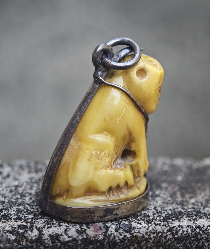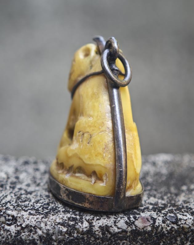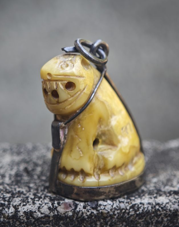 เคาะเดียวแดง เสือแกะจากเขี้ยว พร้อมเลี่ยมกระเช้าเงิน ไม่ทราบเกจิ ขนาดใหญ่กว่าเหรียญ10บาท พิจารณาตามภาพ |