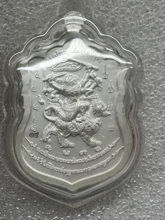 เหรียญเสมารูปเหมือน หลวงพ่อเอื้อน วัดวังแดงใต้ จ.อยุธยา รุ่น มหาเศรษฐี ๘๐ หลังหนุมาน 8 กร ขี่สิงห์ พ.ศ.2563 เนื้อเงินลงยาสีลายธงชาติ no.19
