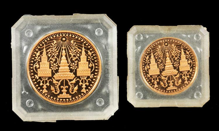 เหรียญพระแก้วมรกต ๓ ฤดู ทองแดงขัดเงา ขนาด 3.2 , 2.5 ซม.พระจอมเกล้าพระนครเหนือ กล่องเดิม