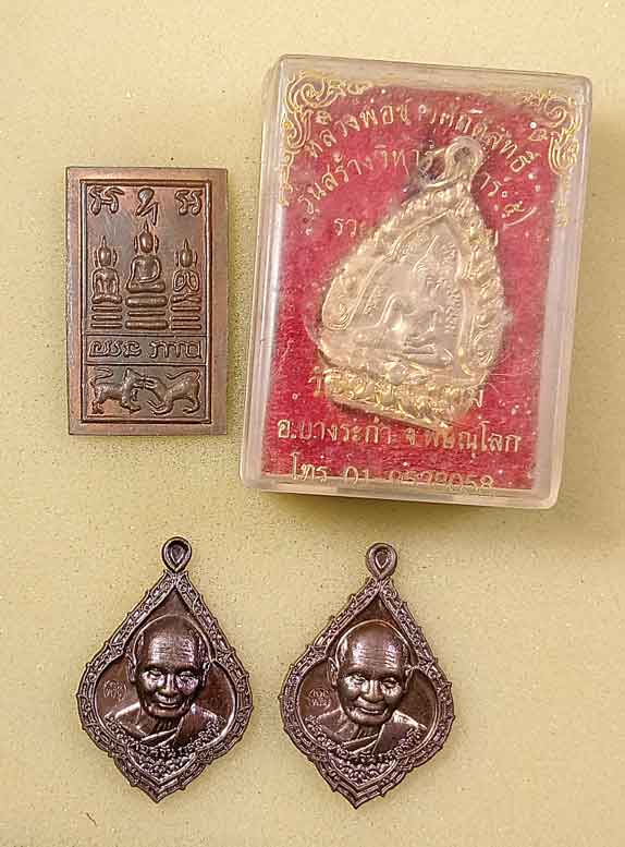 เหรียญสิงห์ป้อนเหยื่อ วัดบางระกำ พิษณุโลก+ เหรียญเจ้าสัว วัดหนองพยอม พิษณุโลก + เหรียญหลวงพ่อหวั่น วัดคลองคูณ พิจิตร 2 เหรียญ
