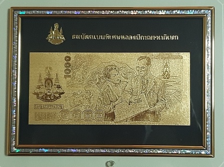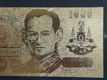 ธนบัตรทองคำ 99.99% รัชกาลที่ 9 ราคา 1,000 บาท พร้อมกรอบและสลักยึดและกล่องเดิมๆ สภาพสวยงามมากๆ (เคาะเดียว)
