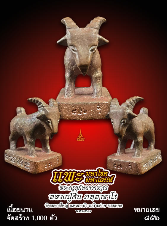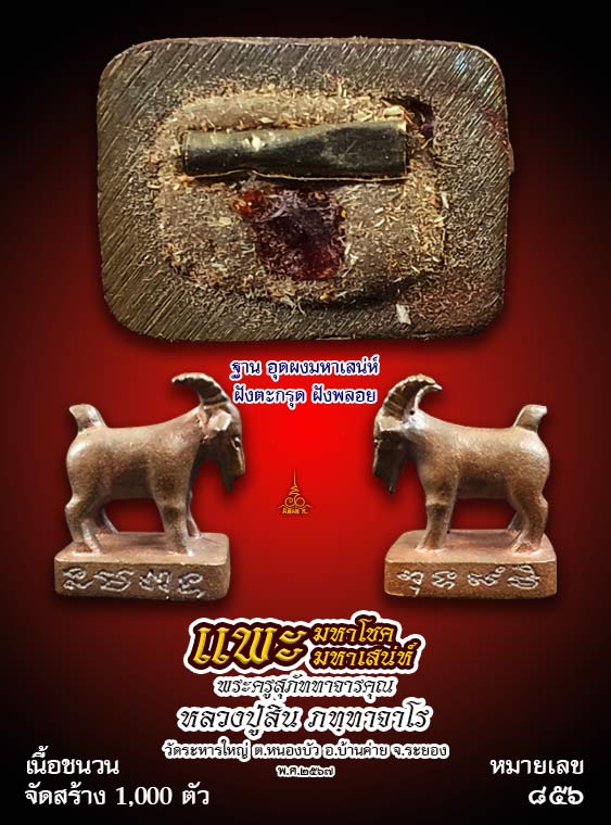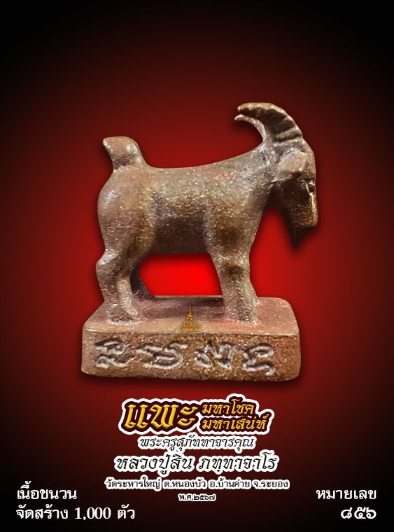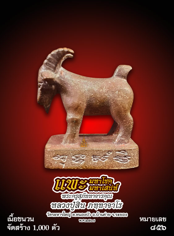 แพะ มหาโชค มหาเสน่ห์ หลวงปู่สิน เนื้อชนวน หมายเลข ๘๕๖ ปี พ.ศ.๒๕๖๗ |