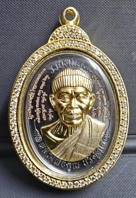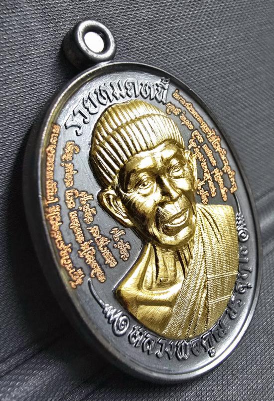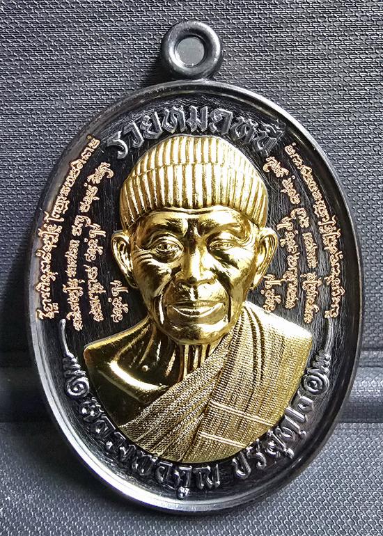 เนื้อทองแดงรมดำ หน้ากากหลวงปู่ชุบทองคำ เลเซอร์อักขระลายมือเต็มหน้าเหรียญ