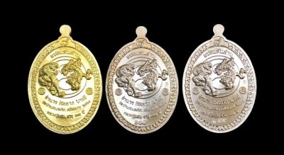 เหรียญหลวงปู่แสน วัดบ้านหนองจิก จ.ศรีสะเกษ รุ่นแปดแสนล้าน ปี 61 (เนื้ออัลปาก้าลงยา2+ทองทิพย์ลงยา1)
