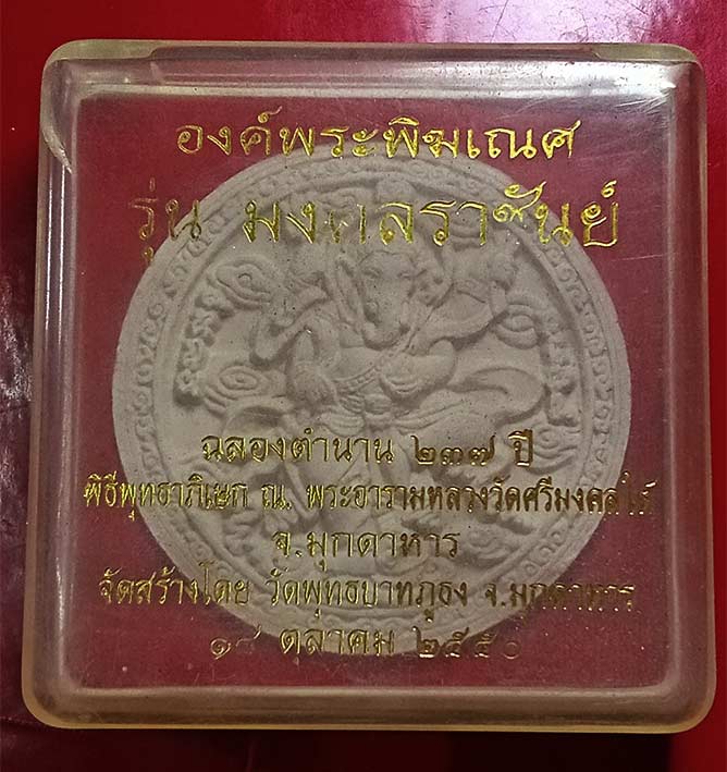 ***วัดใจ...ปีใหม่ไทย*** พระพิฆเนศ รุ่นแรก (รุ่น มงคลราชันย์) ฉลองตำนาน 237 ปี พิธีพุทธภิเษก ณ พระอารามหลวงวัดศรีมงคลใต้ จ.มุกดาหาร จัดสร้างโดย วัดพุทธบาทภูธง ปี50 (มวลสารศักดิ์สิทธิ์เยี่ยม) + (หลังพระ