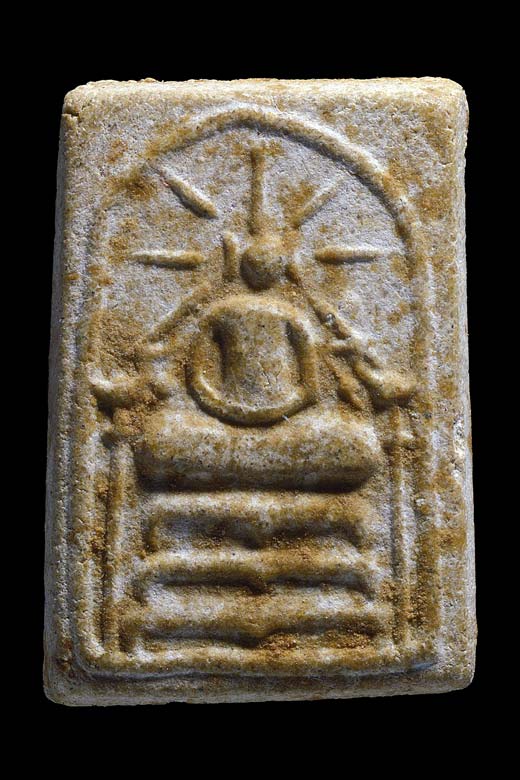 ( 27 ).พระพิมพ์จันทร์ลอย พิมพ์เล็ก ( หลังโพธิ์ ) เนื้อดินเผา ( เริ่มแกะแม่พิมพ์ และ ลองปั๊มตั้งแต่ พ.ศ. 2524 ปลุกเสก พ.ศ.2527 ) จำนวนสร้างน้อย