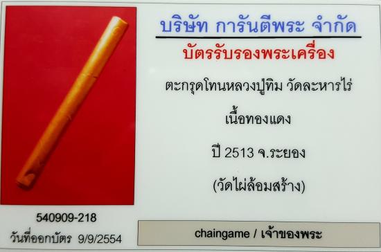 ## บัตรรับรองพระแท้ ออกโดย สถาบันการันตีพระ no. 540909-218