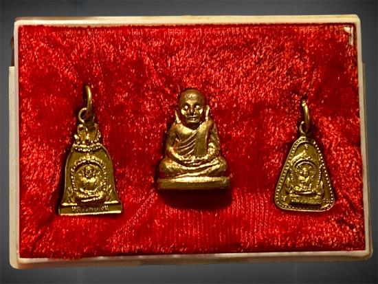พระชุด 3 องค์หลวงพ่อเงิน บางคลาน รุ่น๙๙ ดาวตรีคูณ วัดท้ายน้ำ ปี 2529 พระสวยทุกองค์เล็กสุดงาม พิธีใหญ่ มีกล่องเดิมจากวัด (ฝากล่องหักครับ)