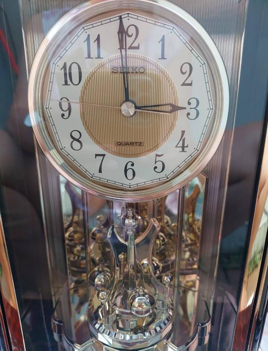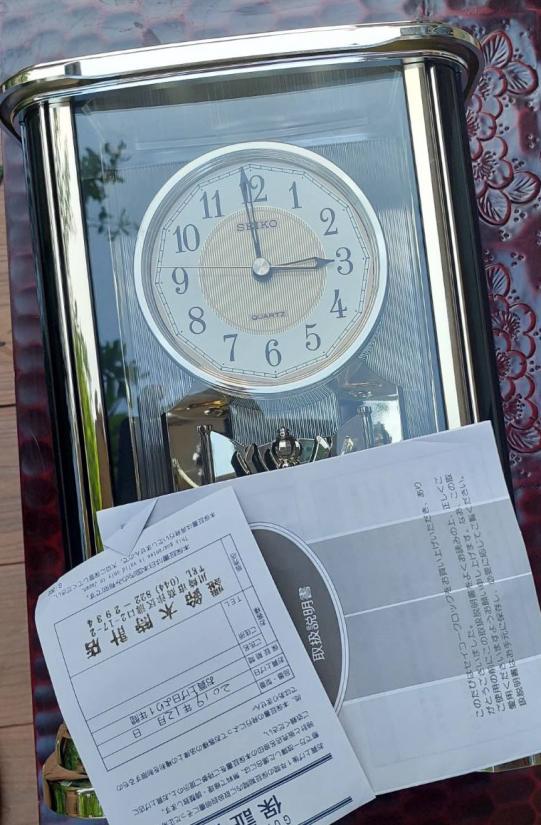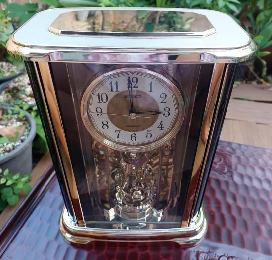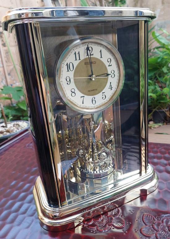 ***วัดใจ***นาฬิกาตั้งโต๊ะโบราณยี่ห้อ Seiko รุ่นที่มีตุ้มเหวี่ยงแบบหมุน สภาพใหม่แกะกล่อง มีใบรับประกัน และคู่มือ