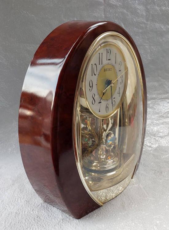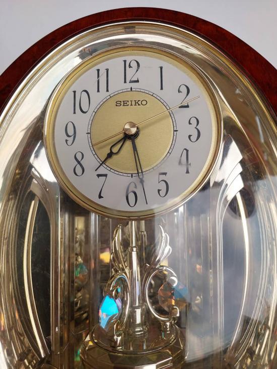นาฬิกาตั้งโต๊ะ Seiko รุ่นที่มีลูกตุ้มประดับด้วยคริสตัลหมุนตลอดเวลาและเครื่องเดินเงียบ