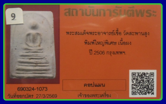 พิมพ์ใหญ่ จัมโบ้ บัตรการันตี 500-พระสมเด็จ หลังลายเซ็นต์ อาจารย์เชื้อ วัดสะพานสูง (ผสมเก่าบางขุนพรหม)สังฆราช(อยู่) ลพ.เงิน,ลพ.น้อย,ลป.นาค ฯลฯปลุกเสก