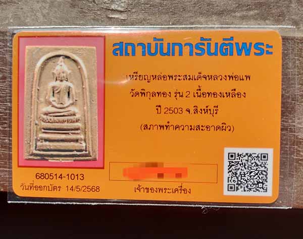 เหรียญหล่อหลวงพ่อแพ วัดพิกุลทอง จ.สิงห์บุรี รุ่น2 ยันต์เล็ก ปี 2503 เนื้อทองผสม
