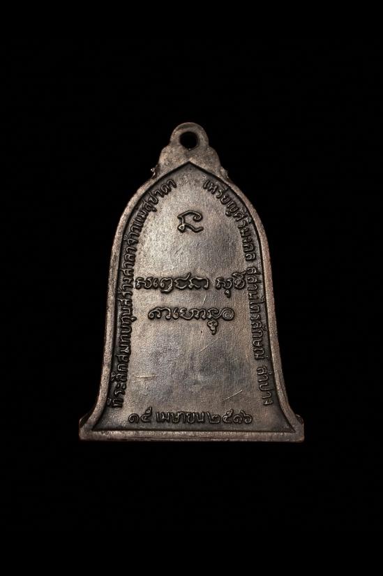 เหรียญระฆังหลวงพ่อเกษม เขมโก ปี 2516 เนื้อทองแดงรมดำ บล็อคเสาอากาศ (นิยมสุด) สภาพสวยคมชัด มาพร้อมบัตรรับรองจากเว็บครับครับ