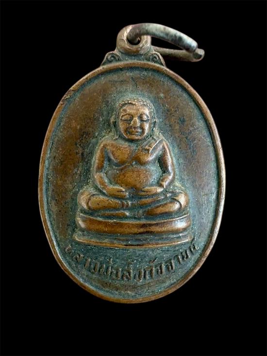 พระสังกัจจายน์ หลังยันต์ห้า นะโมพุทธายะ วัดเกาะสีชัง ชลบุรี เนื้อทองแดง
