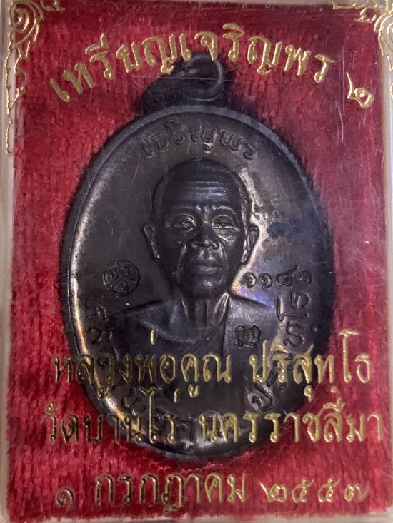 เหรียญหลวงพ่อคูณ วัดบ้านไร่ รุ่นเจริญพร2 ปี57 เนื้ออทองแดงรมดำ no.1181 |