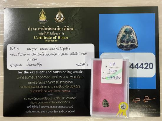 ติดสีผึ้งเขียว หลวงปู่ทิมร่วมปลุกเสก สร้างปี 2505 สวยสมบูรณ์ผิวเดิมๆ ไม่หักไม่ซ่อม รับประกันพระแท้ ดูง่าย พร้อมใบประกาศรางวัลที่2งานสมาคม