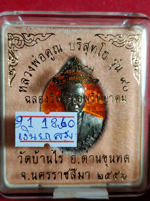 เหรียญหลวงพ่อคูณ ปริสุทโธ รุ่น ฉลองวิหารเทพ ออกวัดบ้านไร่ ปี 56 เนื้อ เงินลงยาสีส้ม หมายเลข 1860 สภาพสวย เคาะเดียวแดง