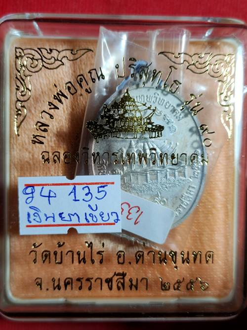 เหรียญหลวงพ่อคูณ ปริสุทโธ รุ่น ฉลองวิหารเทพ ออกวัดบ้านไร่ ปี 56 เนื้อ เงินลงยาสีเขียว หมายเลข 135 สภาพสวย เคาะเดียวแดง