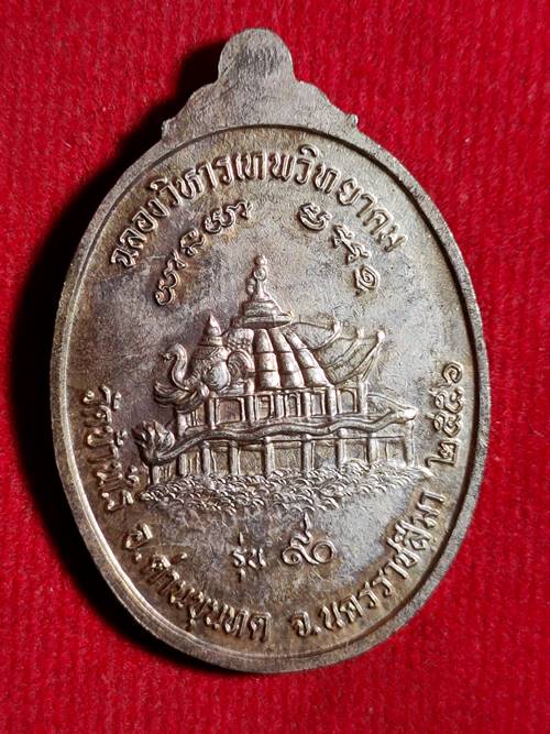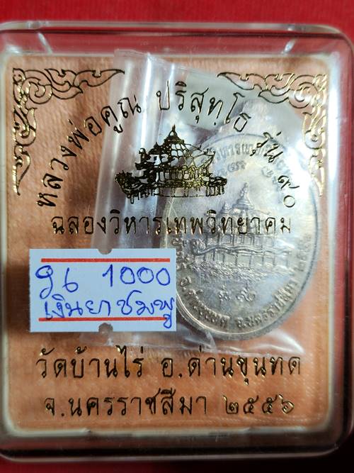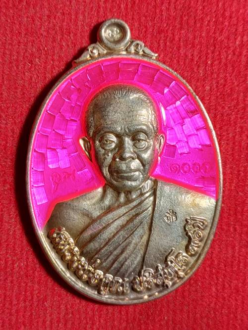เหรียญหลวงพ่อคูณ ปริสุทโธ รุ่น ฉลองวิหารเทพ ออกวัดบ้านไร่ ปี 56 เนื้อ เงินลงยาสีชมพู หมายเลข 1000 สภาพสวย เคาะเดียวแดง