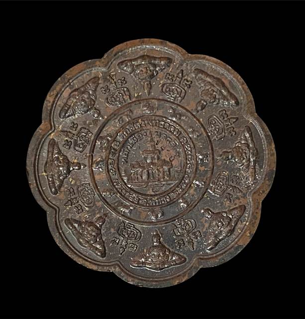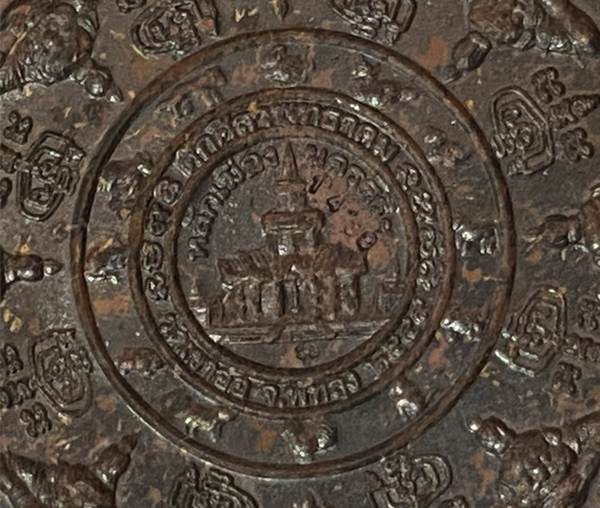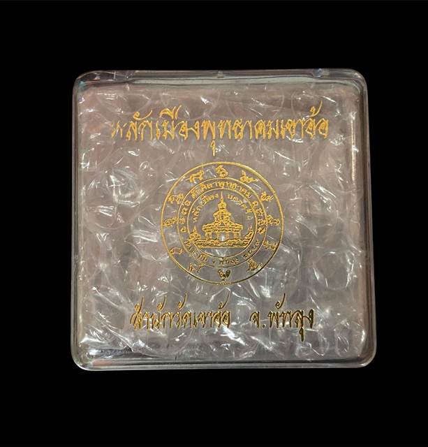เหรียญปิดตาพังพระกาฬ รุ่น "หลักเมืองพุทธาคมเขาอ้อ 2549" เนื้อนวะโลหะพรายเงิน ตอกโค๊ด&หมายเลข กล่องเดิมครับ
