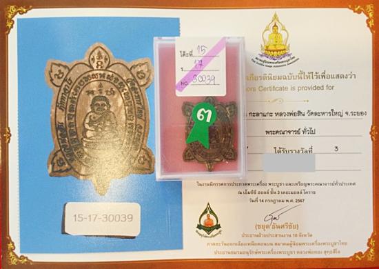 พญาเต่าเรือน กะลาแกะ หลวงพ่อสิน วัดละหารใหญ่ ระยอง ติดรางวัลที่ 3 งานสมาคม #119