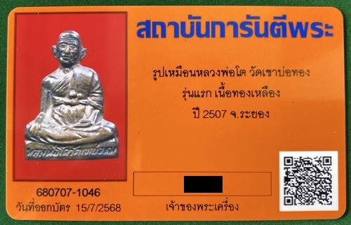 รูปเหมือนหลวงพ่อโต วัดเขาบ่อทอง รุ่นแรก เนื้อทองเหลือง ปี 2507 จ.ระยอง สวยเดิม มาพร้อมบัตรรับรองครับ