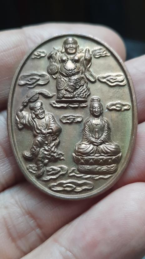 เหรียญ 3 เซียน พระสังกัจจายน์+จี้กง+เจ้าแม่กวนอิม ไม่ทราบที่ครับ (จำนวน2เหรียญ) |