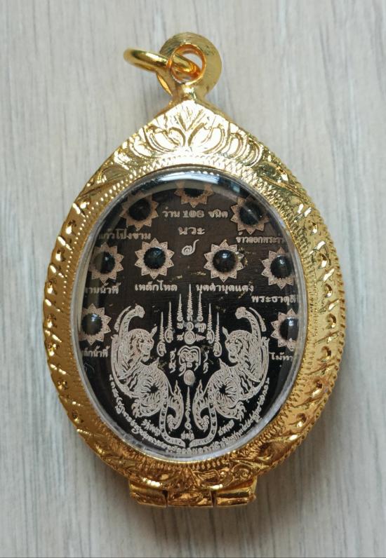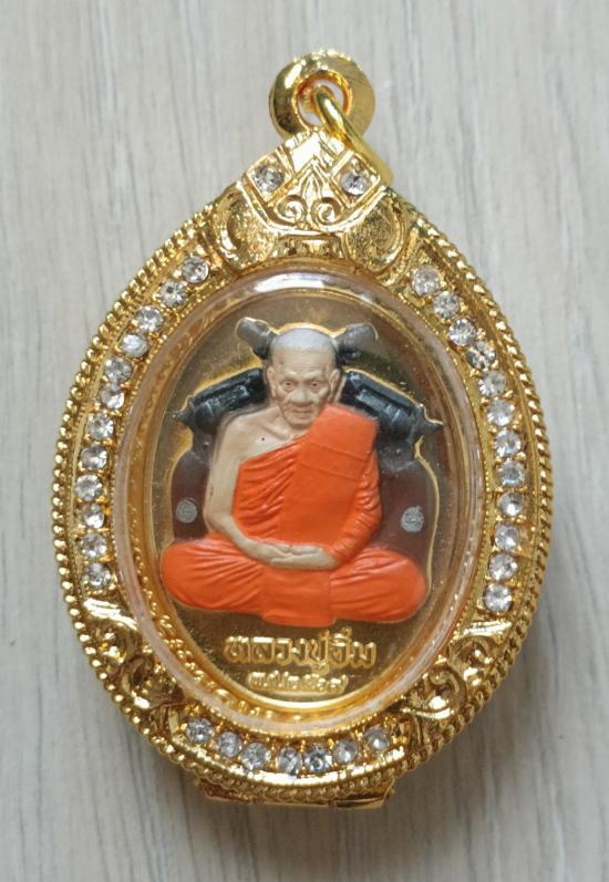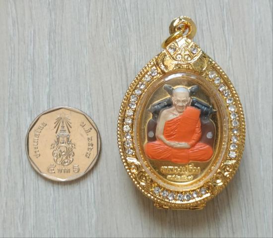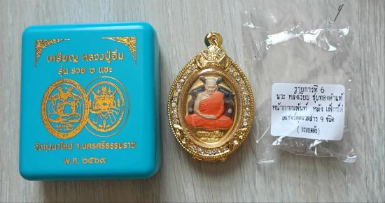 วัดใจเคาะเดียวแดงจ้า เหรียญหลวงปู่อิ่ม วัดทุ่งนาใหม่ รุ่นรวย6แซะ เนื้อนวะชุบน้ำทองคำหน้ากากเพ้นท์ หลังมวลสาร9ชนิด พร้อมตลับชุบทองฝังเพชร เคาะเดียวแดงจ้า