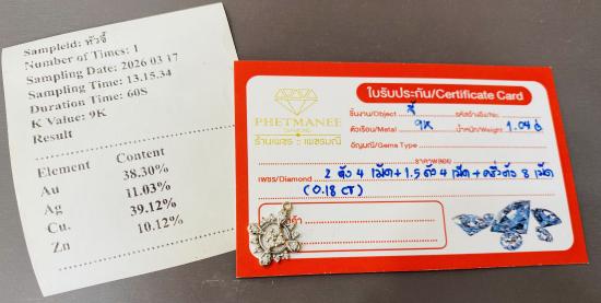 จี้เพชรแท้ธรรมชาติหลุดจำนำ เพชรรวม 18 ตัง ทองคำแท้ 9k นน. 1 กรัม