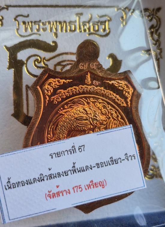 เหรียญโล่ หลวงพ่อโสธร รุ่นเจ้าสัว ปลุกเสกติดต่อกัน5วันเกจิ500กว่ารูป เนื้อทองแดงผิวไฟลงยาแดง เลข 79