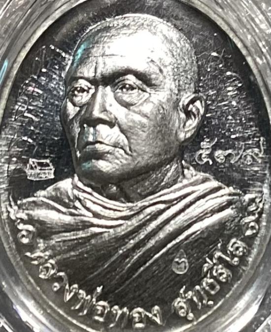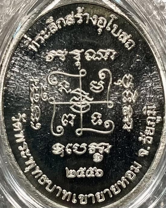เหรียญหันข้าง รุ่นที่ระลึกสร้างอุโบสถ หลวงพ่อทอง สุทธสีโล วัดพระพุทธบาทเขายายหอม จ.ชัยภูมิ ปี2556 เนื้อเงิน หมายเลข 579 แยกจากชุดกรรมการพร้อมบัตรสภาพสวย+กล่องครับ