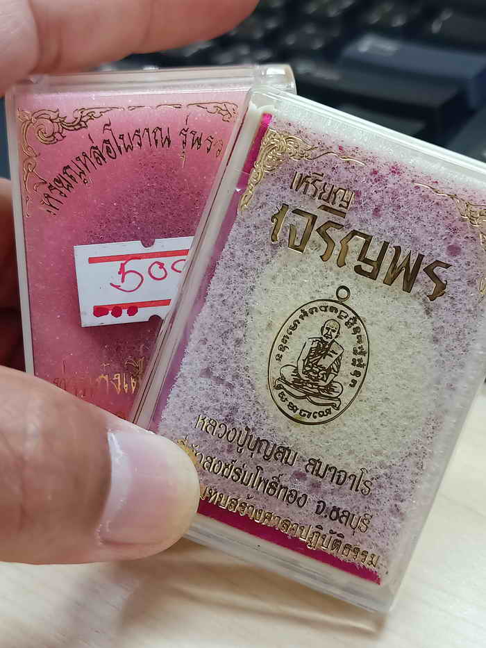 2-44 วัดใจ 100 ยกคู่ เหรียญเจริยพร หลวงปุ่บุญสม สมาจาโร ที่พักสงฆ์ร่มโพธิ์ทอง จ.ชลบุรี 2561 ทล.4229 กล่องเดิม+เรียญหล่อ รวยทันใจ ท่านก๋งเตื่อง เตชปัญโญ จ.ตราด 2561 ชนวน.508 กล่องเดิม